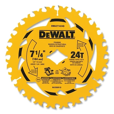DeWalt DWA271424DB10 Tungsten Carbide Tipped Circular Saw Blade, 5/8 in Diamond Arbor, 24 Teeth, 7-1/4 in dia, Bulk 10 Pack