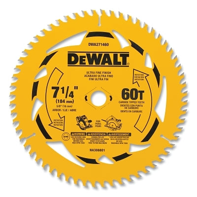 DeWalt DWA271460 Tungsten Carbide Tipped Circular Saw Blade 5/8 in Arbor 60 Teeth 7-1/4 in dia