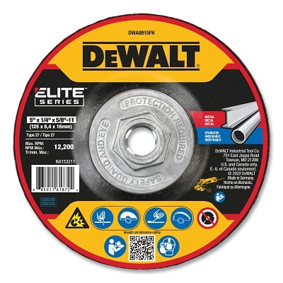 DeWalt DWA8915FH Type 27 Grinding Wheel, 5 in dia, 5/8 in-11 TPI, 24 Grit, 12200 RPM, 1/4 in Thick
