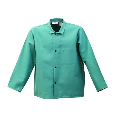 Key benefits include: superior flame-resistant fabric that meets industry safety standards, a robust cotton blend for durability and comfort, and a practical green color that conceals stains and wear effectively. Whether you’re on a job site or in industrial settings, this jacket keeps you protected and confident.