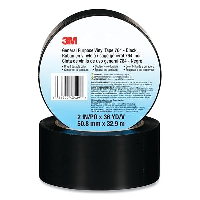 3M 7000028962 General Purpose Vinyl Tape 764, 2 in x 36 yd x 5 mil, Black