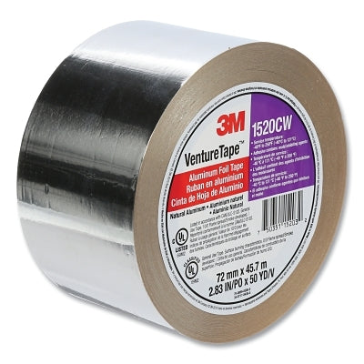 3M 7100043713 Venture Tape Aluminum Foil Tape, 1520CW, 72 mm W x 45.7 m L x 3.2 mil Thick, Silver, 16 RL/CA