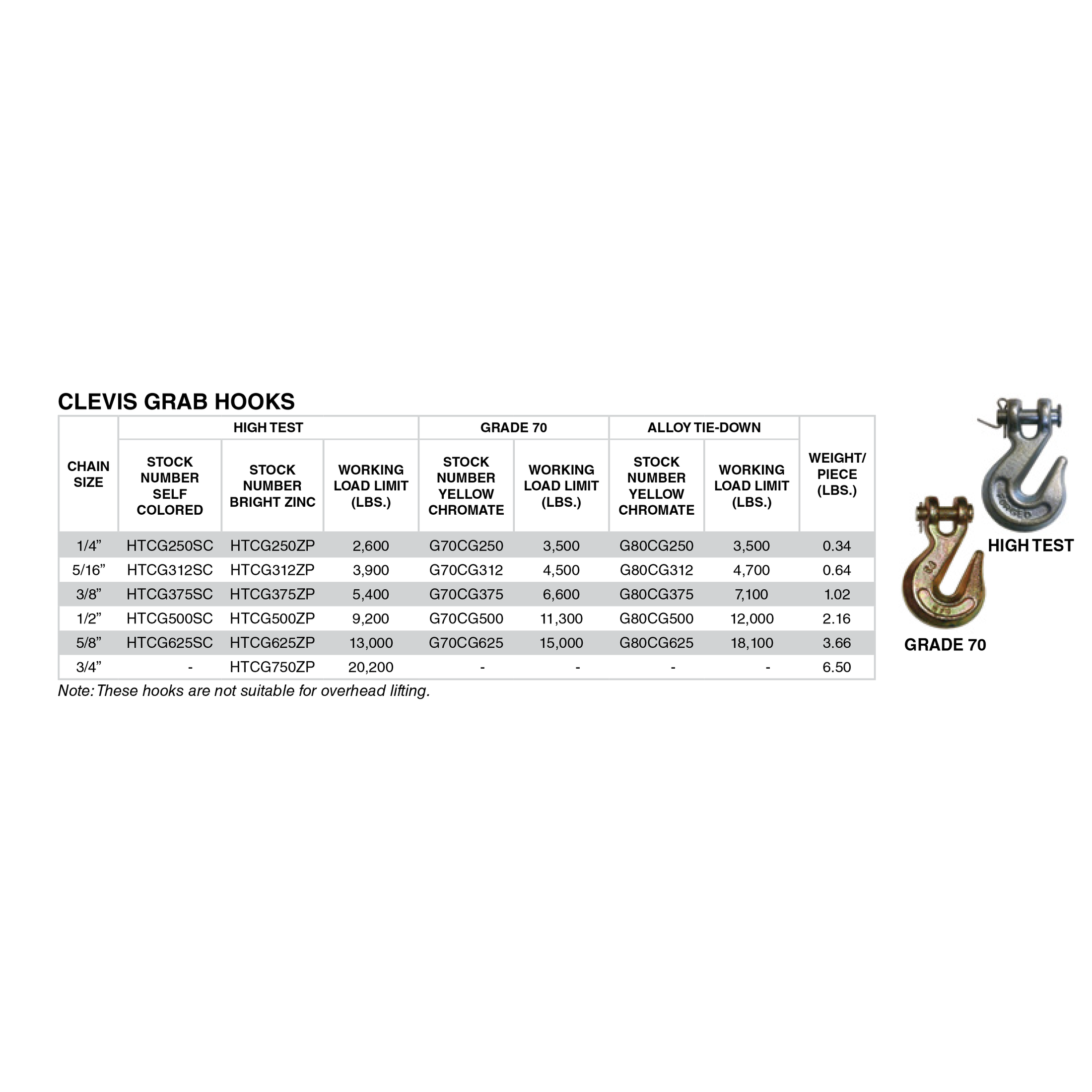 ADVANT-EDGE HTCG250ZPI CLEVIS GRAB HOOKS