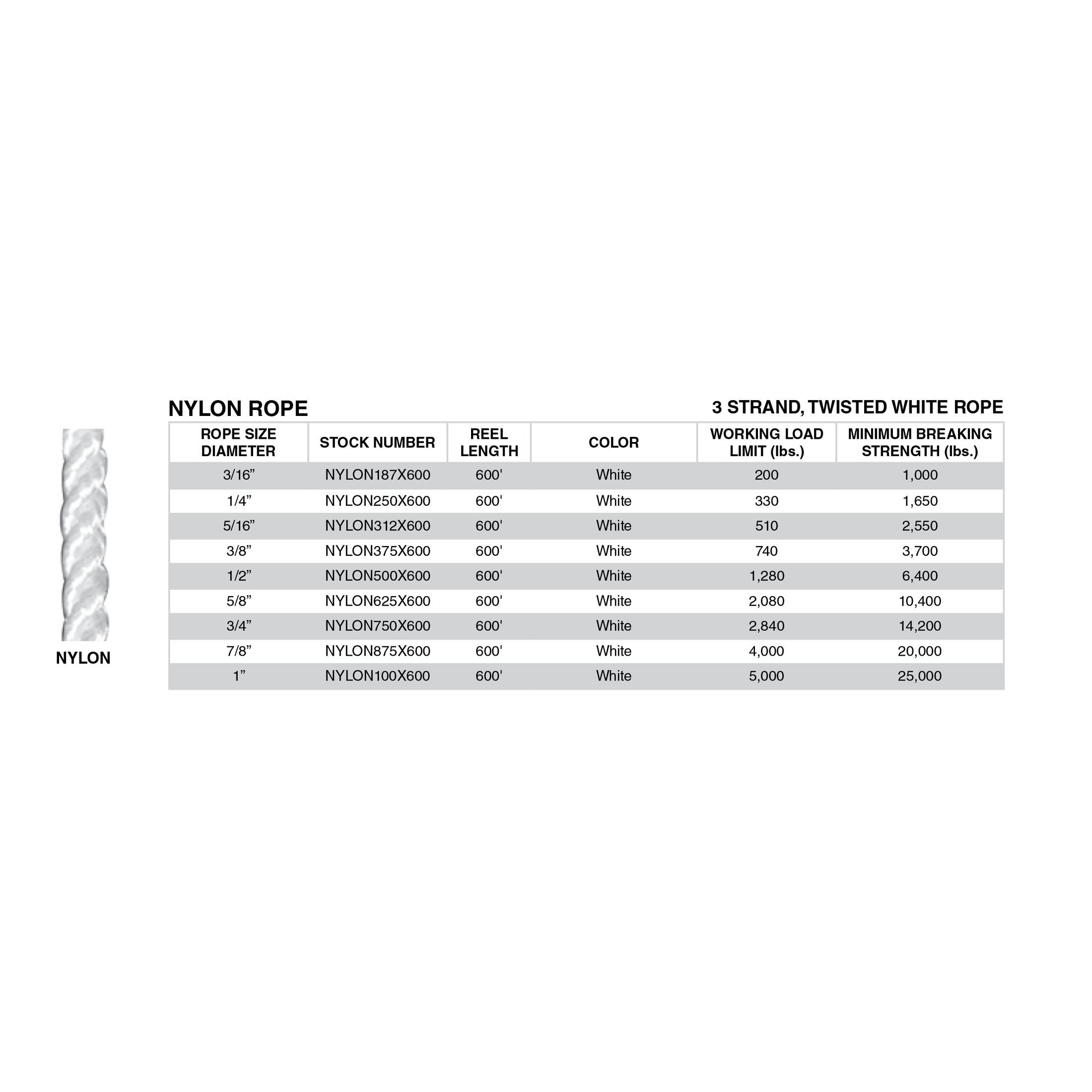 ADVANT-EDGE NYLON625X600I NYLON ROPE 3 STRAND, TWISTED WHITE ROPE