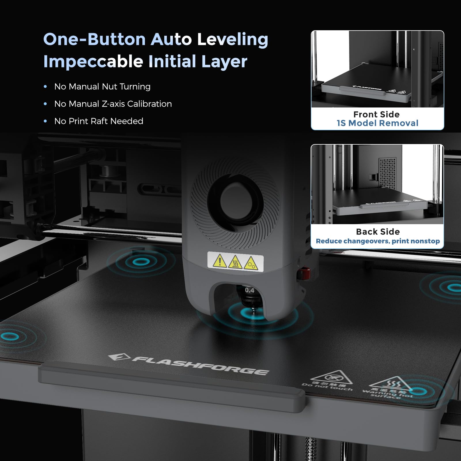 Step into the future of 3D printing with the FLASHFORGE AD5M Adventurer 5M 3d printer , a cutting-edge solution that combines innovation, speed, and precision for an unparalleled printing experience. Our one-click auto-printing system eliminates the need for manual bed leveling, ensuring each print is executed with meticulous accuracy, saving you time and frustration. With a CoreXY all-metal structure, this printer doesn't just deliver impressive travel speeds of up to 600mm/s but also guarantees accuracy, providing a stable foundation for your creative endeavors. Effortlessly adapt to diverse printing needs with the 3S quick-detach nozzle at 280°C, allowing seamless transitions between projects and materials. The 280°C direct extruder ensures stable high-speed printing for a variety of filaments, while the robust all-metal build ensures durability and reliability. Versatility is a cornerstone of the FLASHFORGE Adventurer 5M, supporting a range of filaments including PLA, ABS, PETG, ASA, TPU, PC, PLA-CF, and PETG-CF. Manage your prints intelligently with the 4.3-inch touchscreen interface, efficient connectivity, and network integration, providing a user-friendly experience. Enjoy added convenience with a 35-second quick warm-up to 200℃, a dual-sided PEI platform for easy removal, and multiple platform options. Elevate your creative projects to new heights with the FLASHFORGE Adventurer 5M 3D Printer - where precision, speed, and versatility converge. Unlock a new era of 3D printing possibilities!