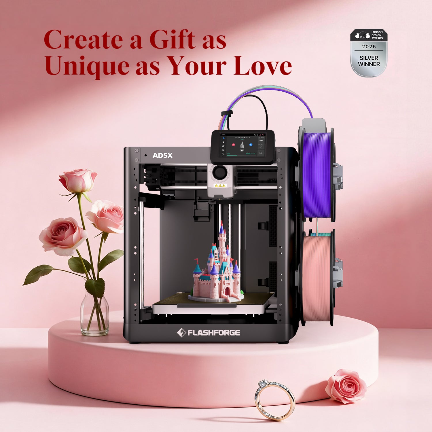 FLASHFORGE AD5X 3D Printer is a compact, high-performance CoreXY 3D printer designed for vibrant multi-color printing and flexible material compatibility. With blazing-fast print speeds up to 600 mm/s and 20,000 mm/s² acceleration, it delivers rapid, high-quality results across a wide range of applications. Equipped with an intelligent IFS module, the AD5X enables true 4-color printing through automatic filament feeding-allowing seamless color changes with minimal user intervention. Its 300 °C direct-drive extruder, enhanced by vibration compensation and dual-channel cooling, ensures stable extrusion and fine detail, even with demanding filaments like PLA, PETG, and carbon-fiber blends. Smart features such as 1-click auto bed leveling, filament run-out detection, 99% power-loss recovery, and a responsive 4.3″ color touchscreen streamline the entire printing experience. Ideal for hobbyists, educators, and creators alike, the AD5X offers plug-and-play multicolor performance, 10-minute quick setup, and robust Wi-Fi and Ethernet connectivity for modern remote control and monitoring.