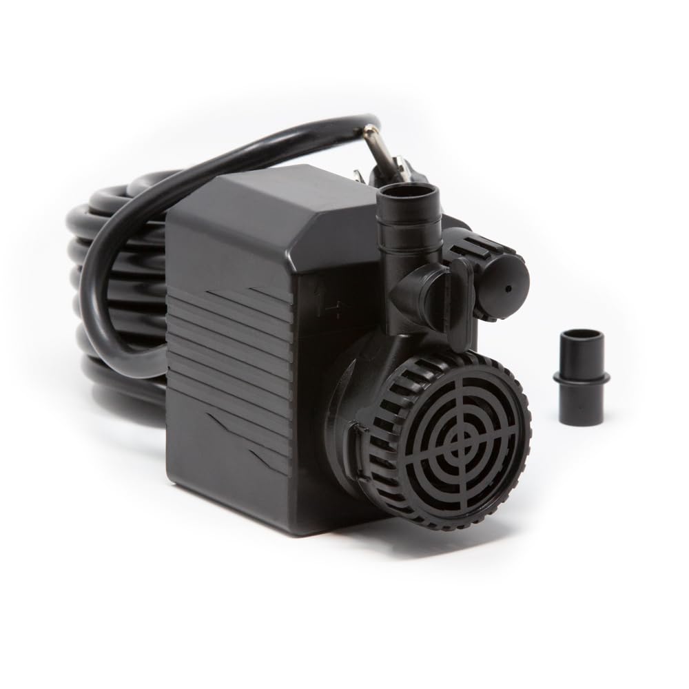 The adjustable valve allows you to adjust the water flow. This pump reaches a maximum lift of 6.5 ft. with a maximum of 290 gallons per hour. This pump is ideal for 3 ft. to 5 ft. fountains. It efficiently pumps 280 GPH at the height of 1 ft. and conveniently connects to 1/2 in. ID tubing. This pump is equipped with a 16 ft. cord.