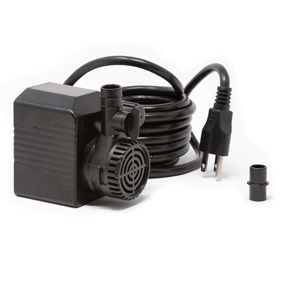 The adjustable valve allows you to adjust the water flow. This pump reaches a maximum lift of 8.2 ft. with a maximum of 430 gallons per hour. This pump is ideal for 5 ft. to 7 ft. fountains. It efficiently pumps 400 GPH at the height of 1 ft. and conveniently connects to 1/2 in. ID tubing. This pump is equipped with a 16 ft. cord.