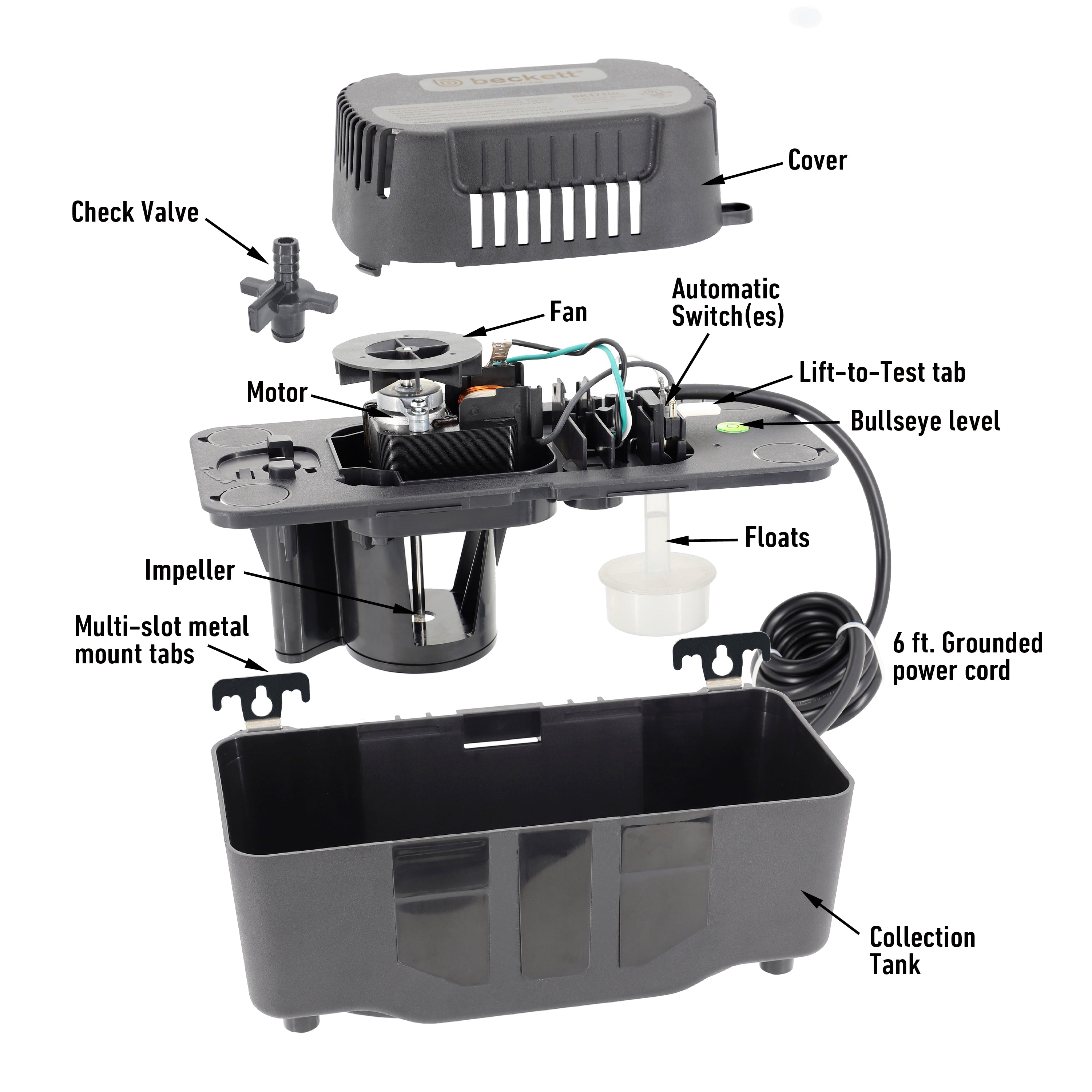 Beckett BK221LSUL Medium Condensate Pump w/o Safety switch, 115V, 22 Foot Max Lift