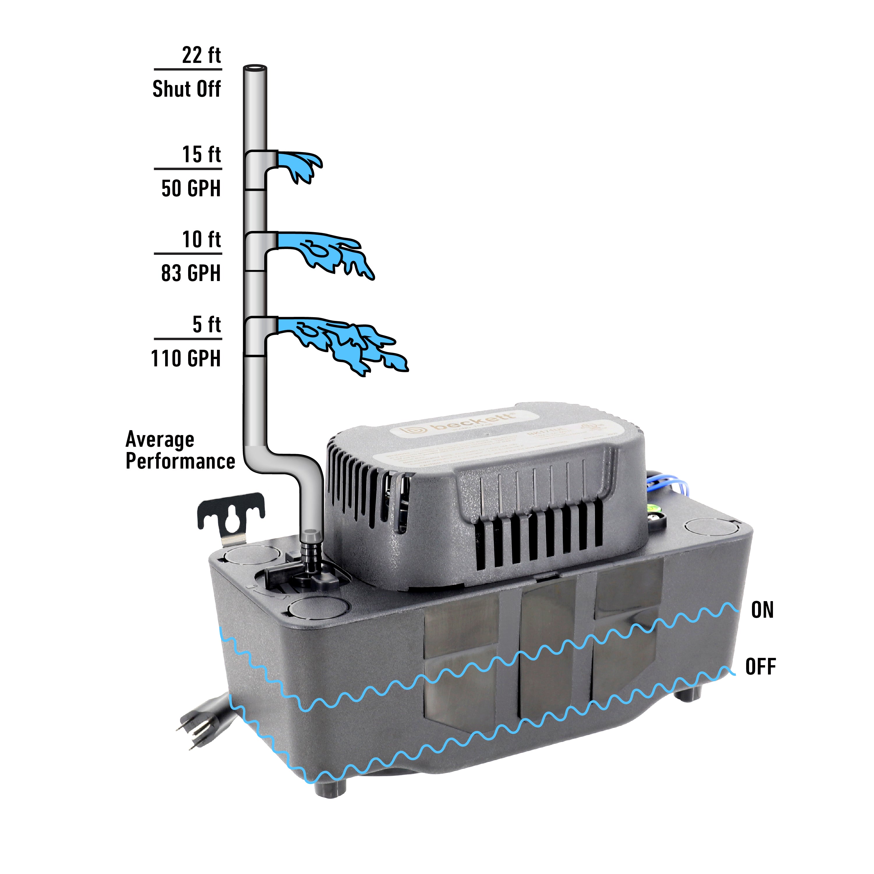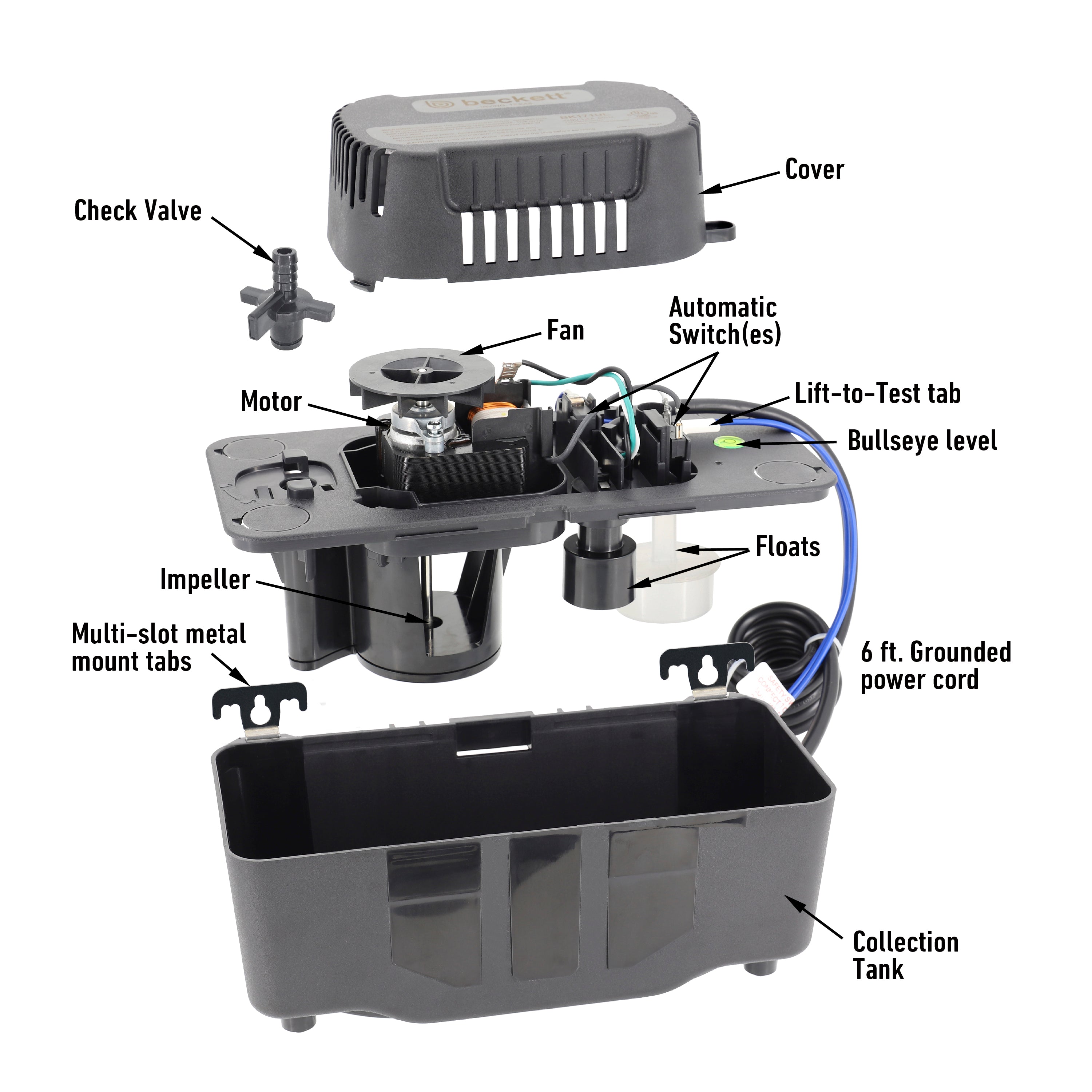 Beckett BK221TUL Medium Condensate Pump w/Safety Switch and tubing, 115V, 22 Foot Max Lift