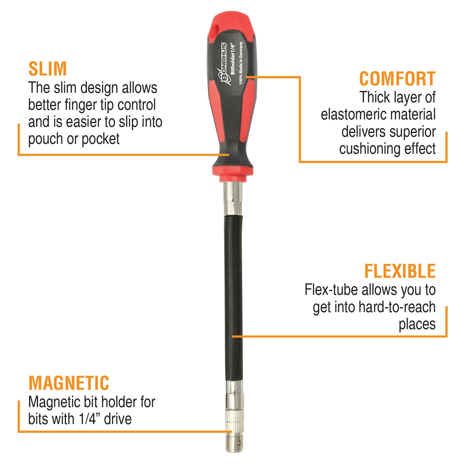 Bondhus 1/4" Drive Flex Magnetic PowerGrip™ Bit Holder