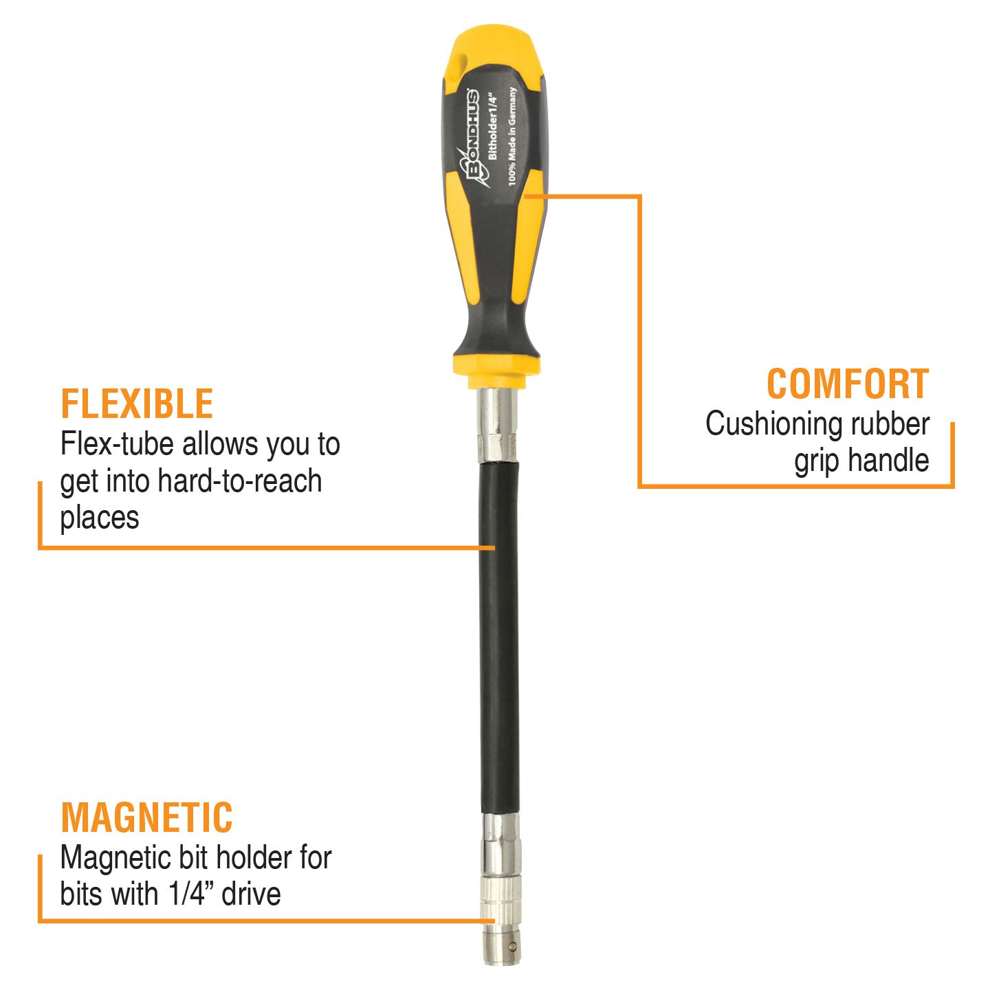 Bondhus 1/4" Drive Magnetic ComfortGrip™ Bit Holder 1675812215