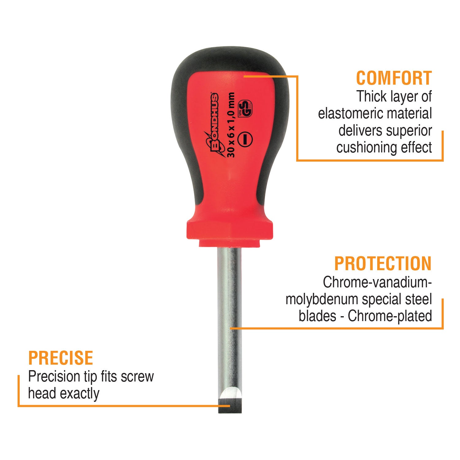 Bondhus 15/64" x 1-3/16" PowerGrip™ Stubby Slotted Screwdriver