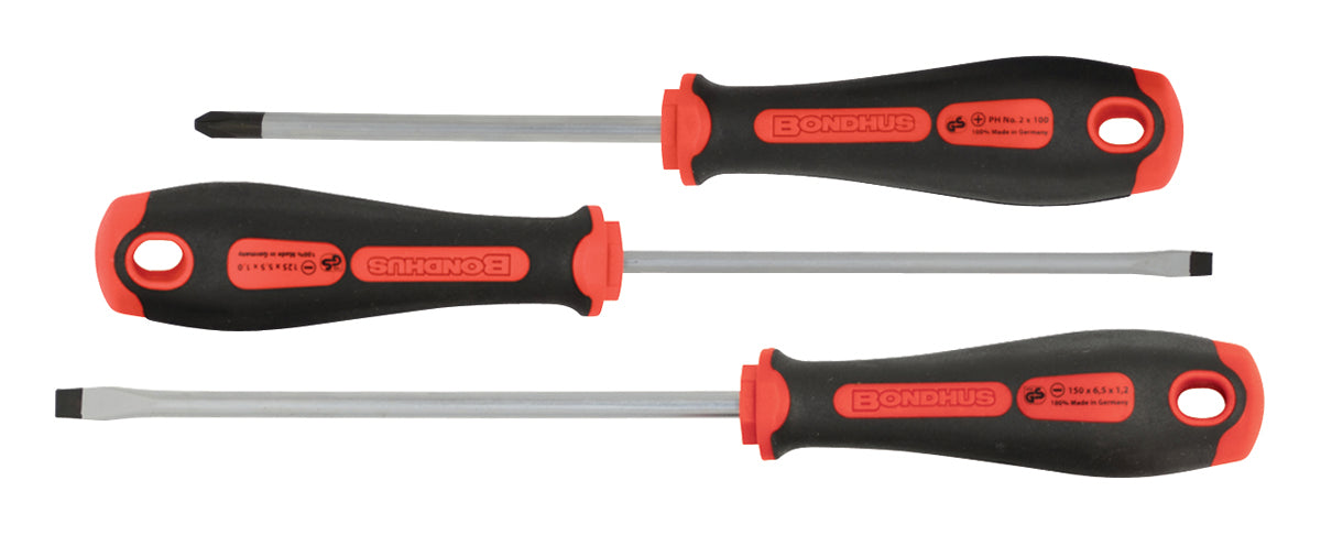 Bondhus Set 3 PowerGrip™ Slotted & Phillips Screwdrivers; 7/32, 1/4" & PH2