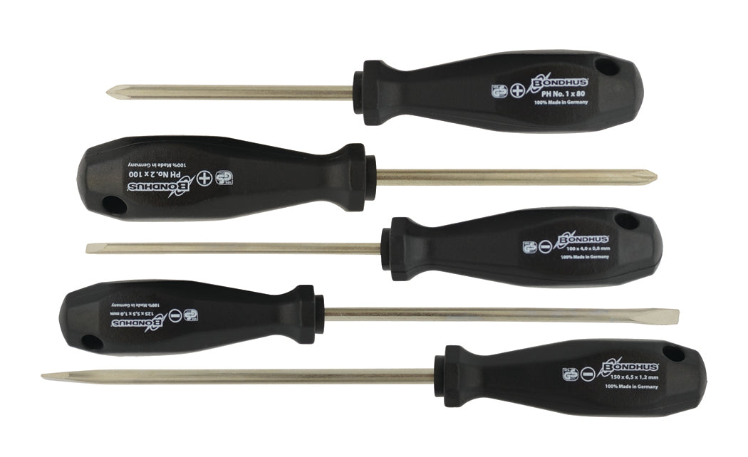 Bondhus Set 5 BasicGrip™ Slotted & Phillips Screwdrivers; 5/32, 7/32, 1/4', PH1 and PH2