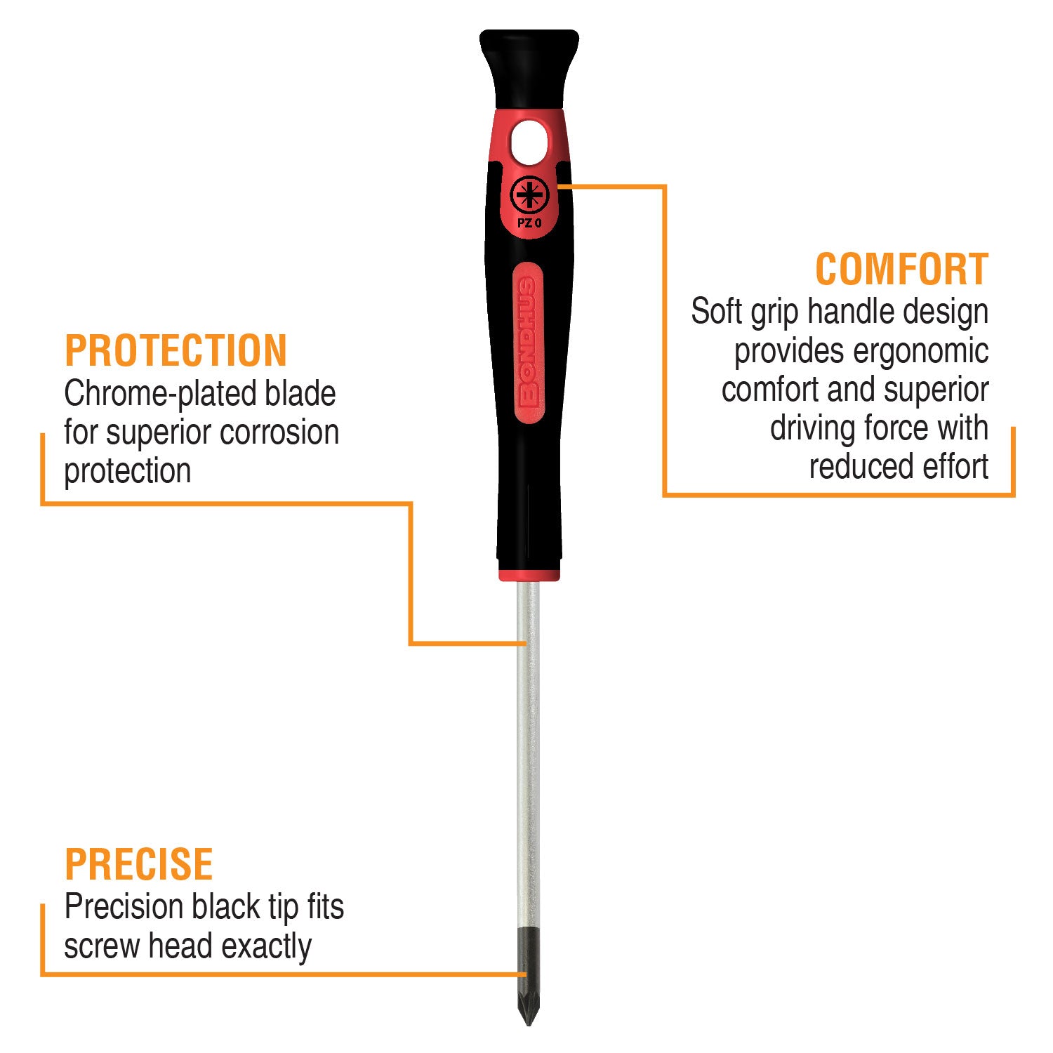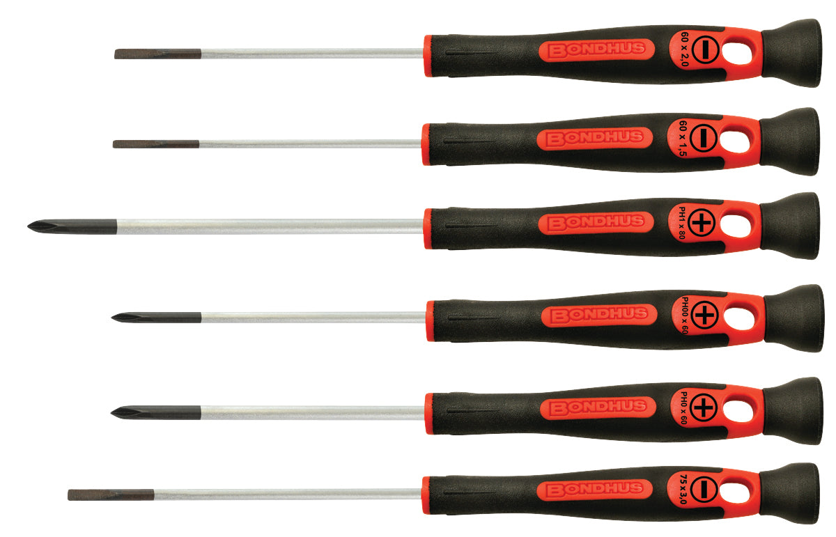 Bondhus Set 6 PrecisionGrip™ Slotted and Phillips Screwdrivers; 1/16, 5/64, 1/8, PH00, PH0 & PH1 1675804370