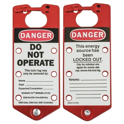 Crafted from high-quality materials and finished in vivid red, this lockout hasp is not only built to last but also highly visible, helping to prevent accidental re-energizing of equipment. The clearly labeled design enhances communication and compliance with safety standards.