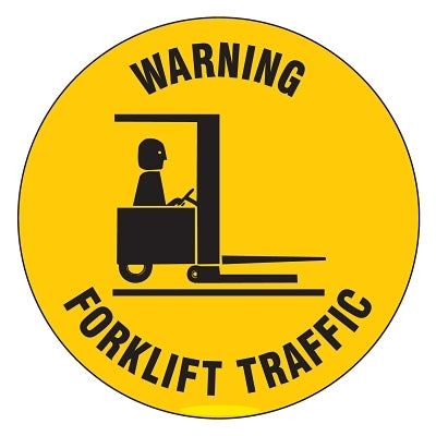 Brady 97615 Anti Skid Floor Signs Warning Forklift Traffic, 17 in Dia., Black on Yellow