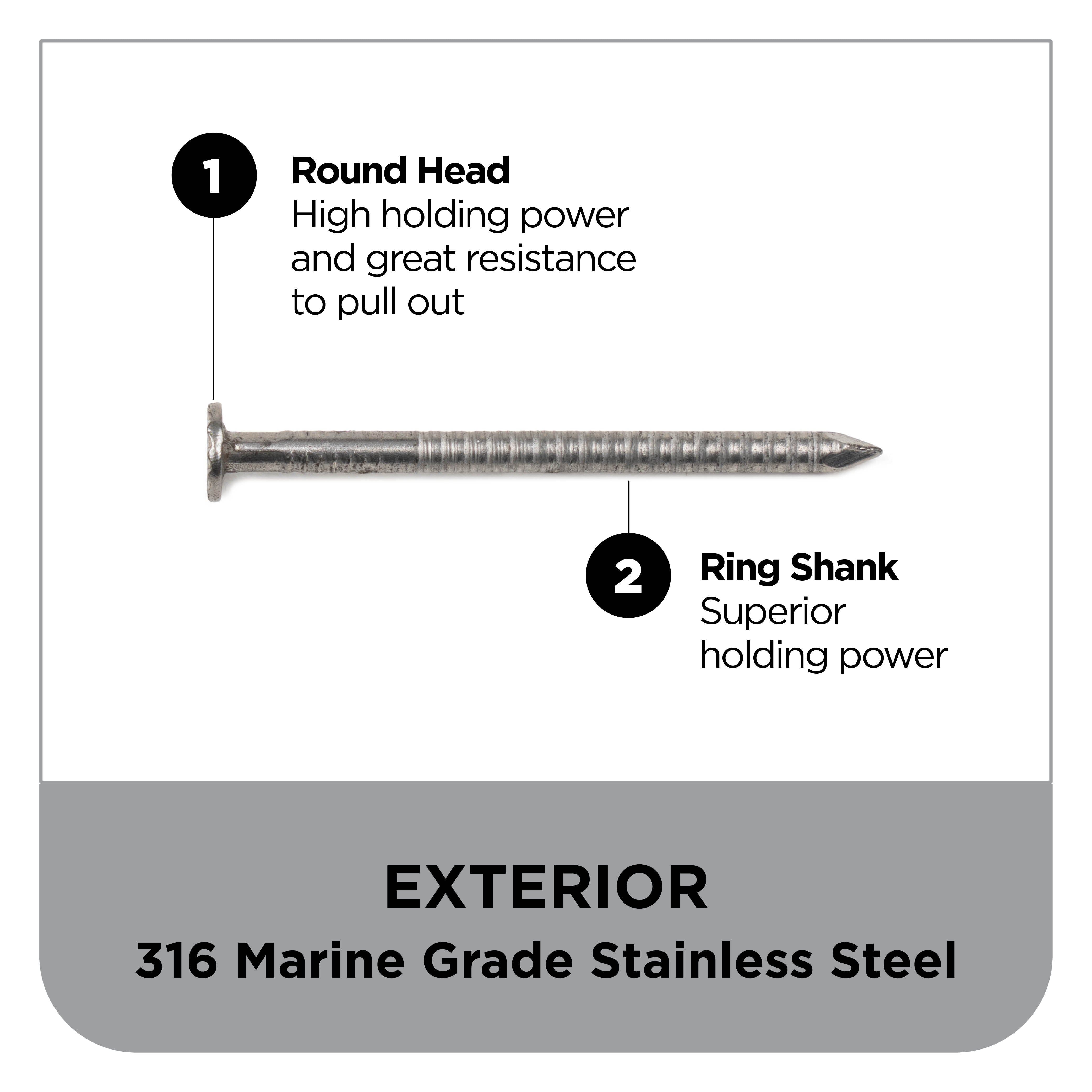 Perfect for coastal and high-humidity environments, these ring shank nails deliver superior holding power without rust stains, making them essential for cedar, redwood, fiber cement, and approved for LP SmartSide, James Hardie, and other leading brands."