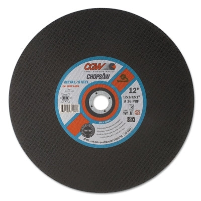 CGW Abrasives 35575 Cut-Off Wheel, Chop Saws, 12 in Dia, 3/32 in Thick, 36 Grit, Alum. Oxide
