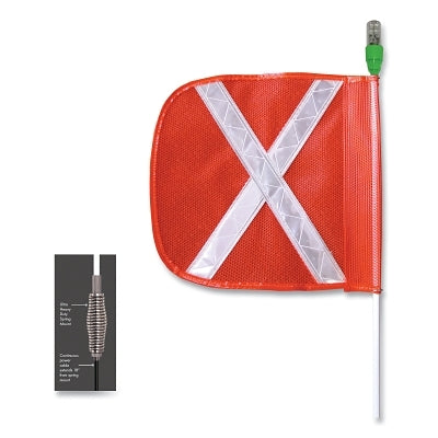 Introducing the Checkers AP512OW8PT Warning Whip, an essential tool for enhancing safety and visibility in any environment. Measuring 12 inches with a vibrant orange flag featuring a reflective white 'X', this 5 ft whip is designed to grab attention and ensure that your message is clear.
