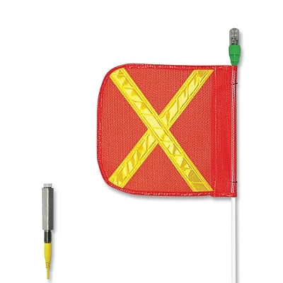 Introducing the Checkers AP8.16OY.GF Warning Whip, your ultimate safety companion for visibility and alertness. Measuring 16 inches in length, this eye-catching warning whip features a vibrant orange flag with a reflective yellow 'X', ensuring you stand out in any environment.