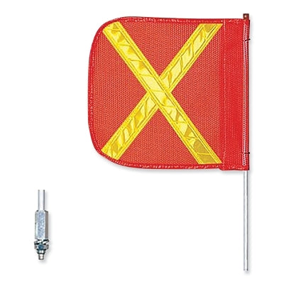Boost your visibility and safety on the road or job site with the Checkers FS8XY-O General Purpose Safety Whip. Featuring a striking 12 in x 11 in bright orange flag paired with a highly reflective yellow 'X', this safety whip ensures exceptional visibility from a distance and in low-light environments. The reflective design increases awareness for drivers and pedestrians alike, enhancing overall safety.
