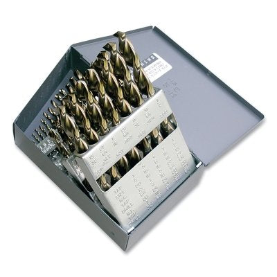 Cle-Line C18623 1872 Heavy-Duty Black and Gold Parabolic Jobber Length Drill Set, 29 Pc, 1/16 in to 1/2 in, Round Plastic Index Case