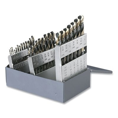 Introducing the Cle-Line C74059 1878 Heavy-Duty Black and Gold with Flats Jobber Length Drill Set, a premium 25-piece collection designed for both professionals and DIY enthusiasts. This comprehensive set offers drill sizes ranging from 1mm to 13mm, ensuring you have the right tool for any project.
