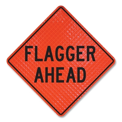 Cortina 07-800-4024-L Quadra Flex Roll-Up Flagger Ahead Sign, Fluorescent Orange, 48 in L + 48 in W