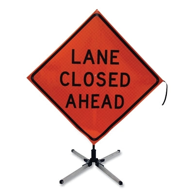 Cortina 07-800-4362-L Quadra Flex Roll-Up Lane Closed Ahead Sign, Fluorescent Orange, 48 in L + 48 in W