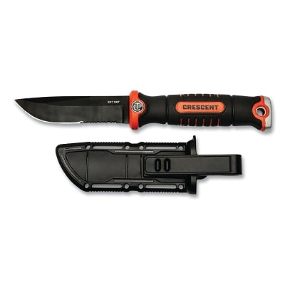 Crescent CPKFX Fixed Blade Trade Knife, 9.75 in L, Serrated, Plastic, Rawhide/ Black