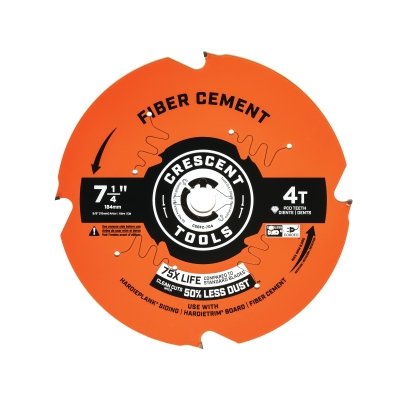 Crescent CSBFC-704 Fiber Cement Circular Saw Blade, 5/8 in dia Arbor, 4 Teeth, 7-1/4 in dia Blade, 5 EA/PK