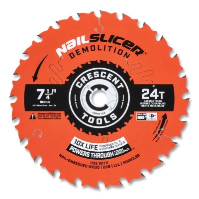 Crescent CSBFD-724 NailSlicer Demolition Circular Saw Blade, 5/8 in dia Arbor, 24 Teeth, 7-1/4 in dia Blade, 5 EA/PK