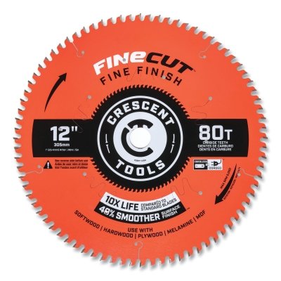 Crescent CSBFF-1280 FineCut Finishing Circular Saw Blade, 1 in dia Arbor, 80 Teeth, 12 in dia Blade, Fine, 5 EA/PK