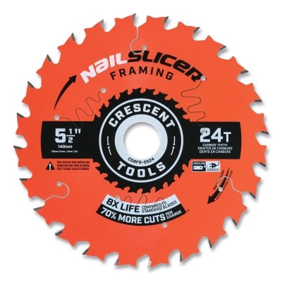 Crescent CSBFR-5524 NailSlicer Framing Circular Saw Blade, 3/4 in dia Arbor, 24 Teeth, 5-1/2 in dia Blade, 5 EA/PK