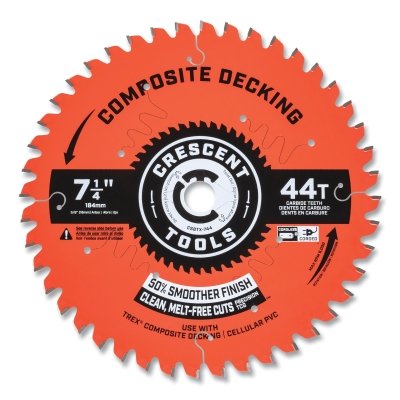 Crescent CSBTX-744 Composite Decking Circular Saw Blade, 5/8 in dia Arbor, 44 Teeth, 7-1/4 in dia Blade, 5 EA/PK