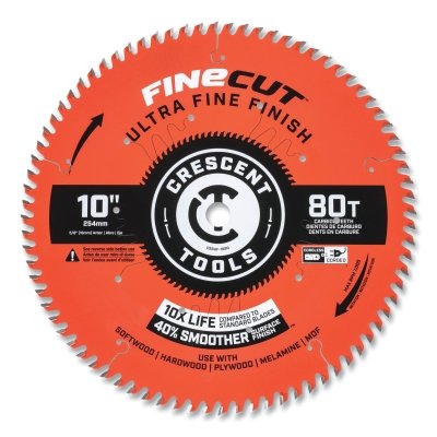 With a diameter of 10 inches and a 5/8 inch arbor, this saw blade boasts 80 teeth that ensure an incredibly smooth finish every time you work. Whether you are tackling hardwood, plywood, or composites, the Crescent FineCut blade will deliver the clean edges and tight tolerances you desire.
