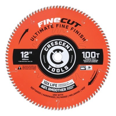 Crescent CSBUL-12100 FineCut Finishing Circular Saw Blade, 1 in dia Arbor, 100 Teeth, 12 in dia Blade, Ultimate, 5 EA/PK