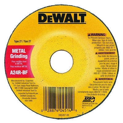DeWalt DW4419 Type 27 Depressed Center Wheel, 4 in, 5/8 in Arbor, A24R Grit, 1/4 in Thick