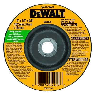 DeWalt DW4429 Type 27 Depressed Center Wheel, 4 in, 5/8 in Arbor, C24R Grit, Silicon Carbide