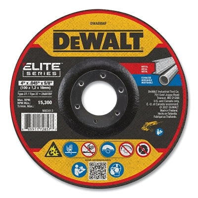 DeWalt DWA8956F Elite Series Cutting Wheel Type 27 4 in dia 0.045 in Thick 5/8 in Arbor Hole 60 Grit Zirconia Alumina 15300 RPM