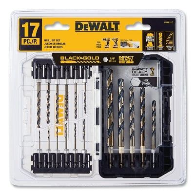 DeWalt DWAH1117 Black and Gold Impact Ready Drill Bit Set, 17 Pc, 1/4 in Hex Shank, 135° Split Point