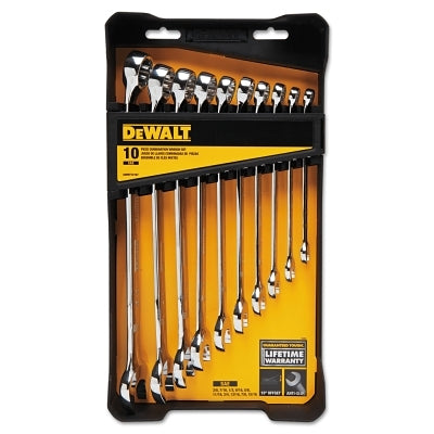 DeWalt DWMT72167 10 Piece Combination Wrench Set, SAE, Polished Chrome, 15° Offset End