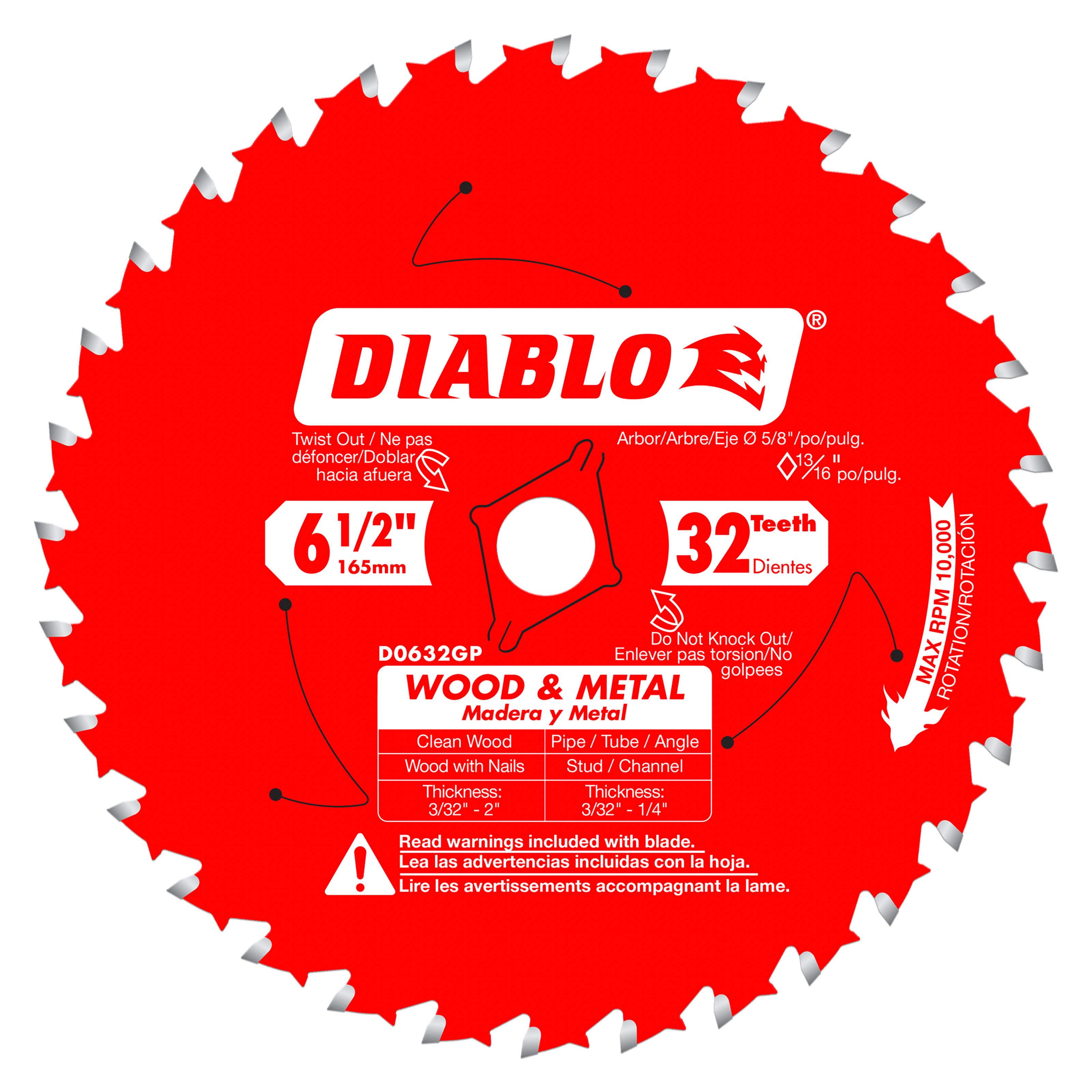 Introducing the Diablo D0632GPX 6-1/2" x 32 Tooth Wood & Metal Carbide Saw Blade, the revolutionary solution for your cutting needs! This industry-first, multi-purpose saw blade is designed to handle both wood and metal with exceptional precision and ease.