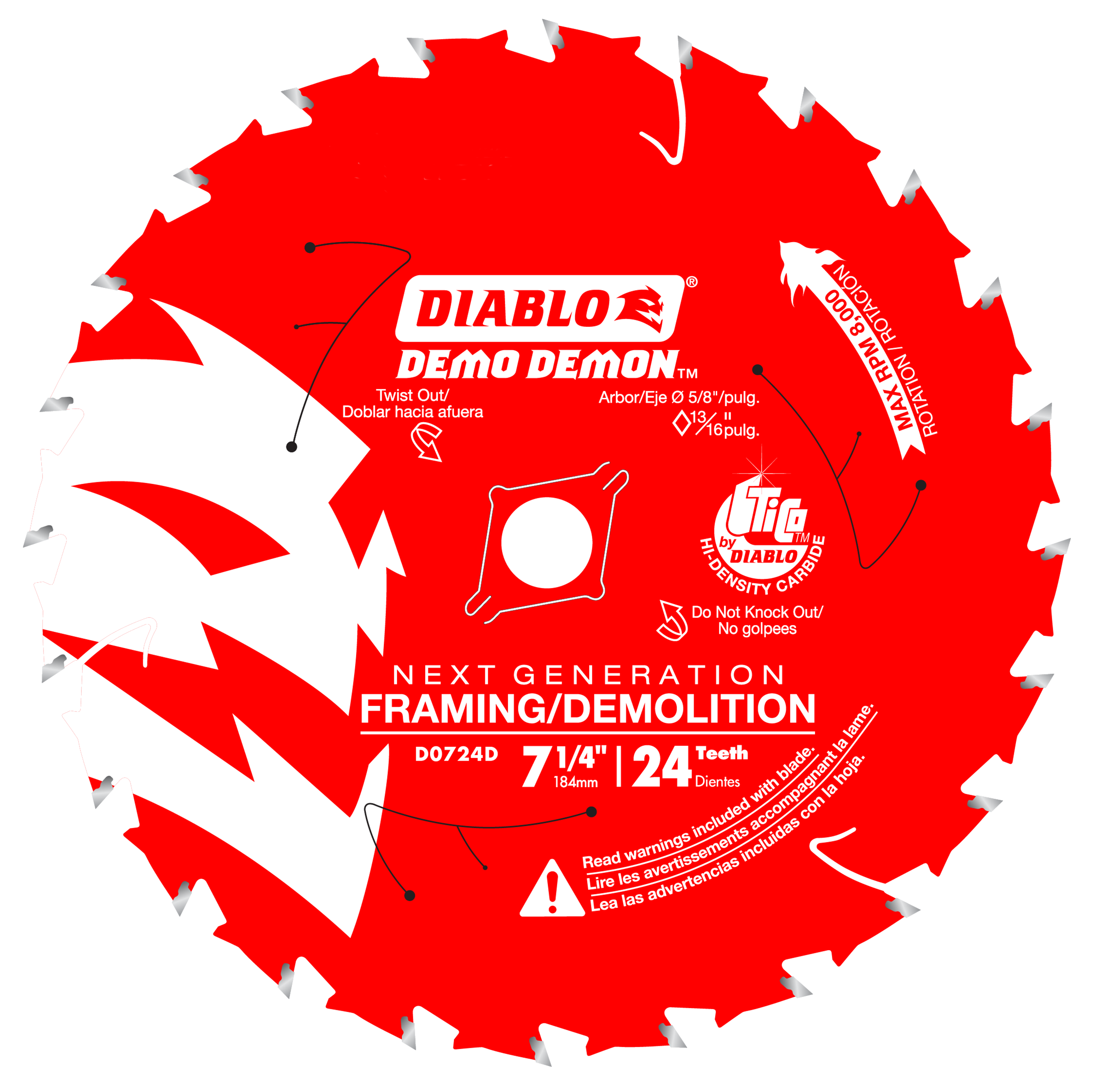 Diablo D0724DA 7-1/4" x 24-Teeth Demo Demon™ Framing/Demolition Saw Blade for Wood