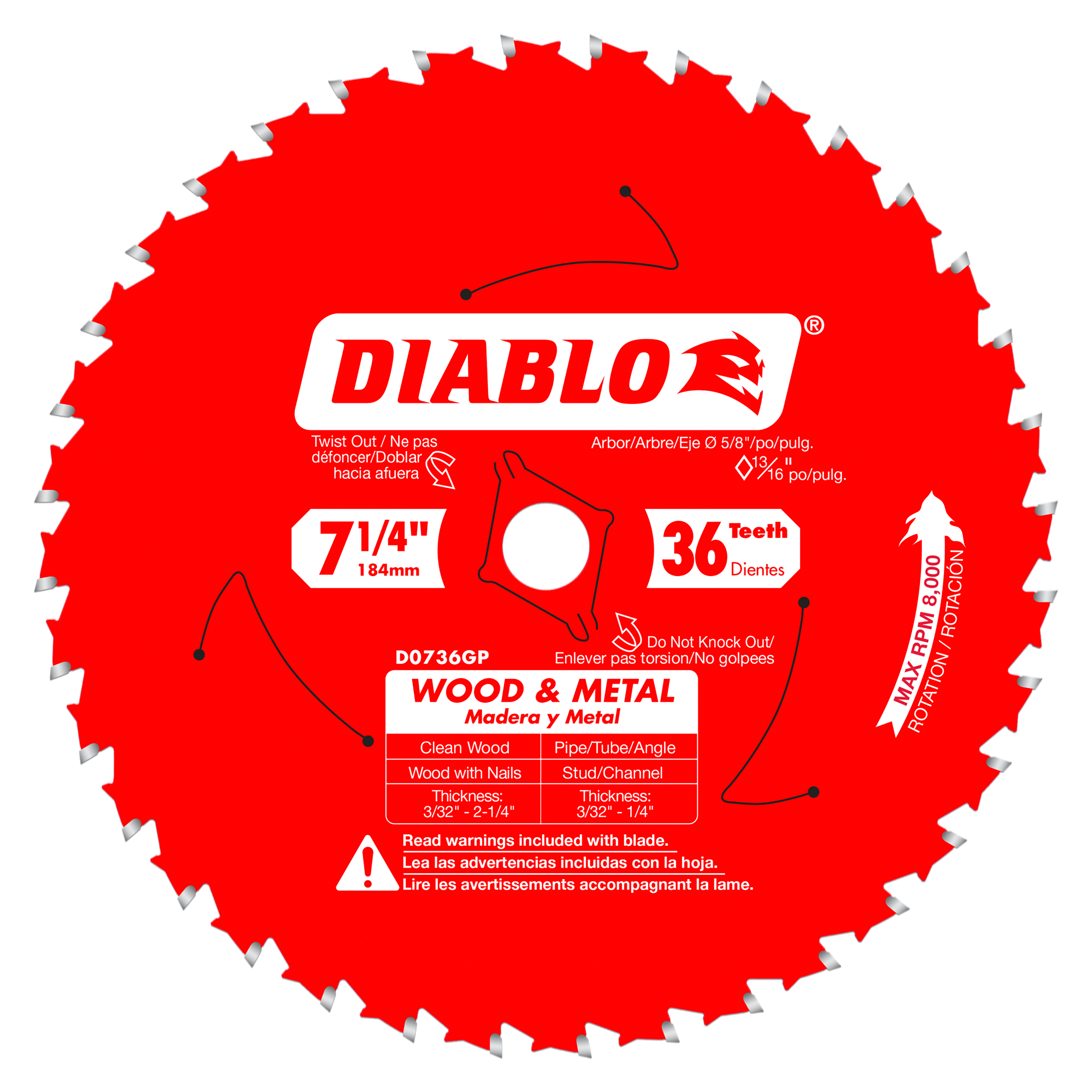 Diablo D0736GPX 7-1/4" x 36 Tooth Wood & Metal Carbide Saw Blade