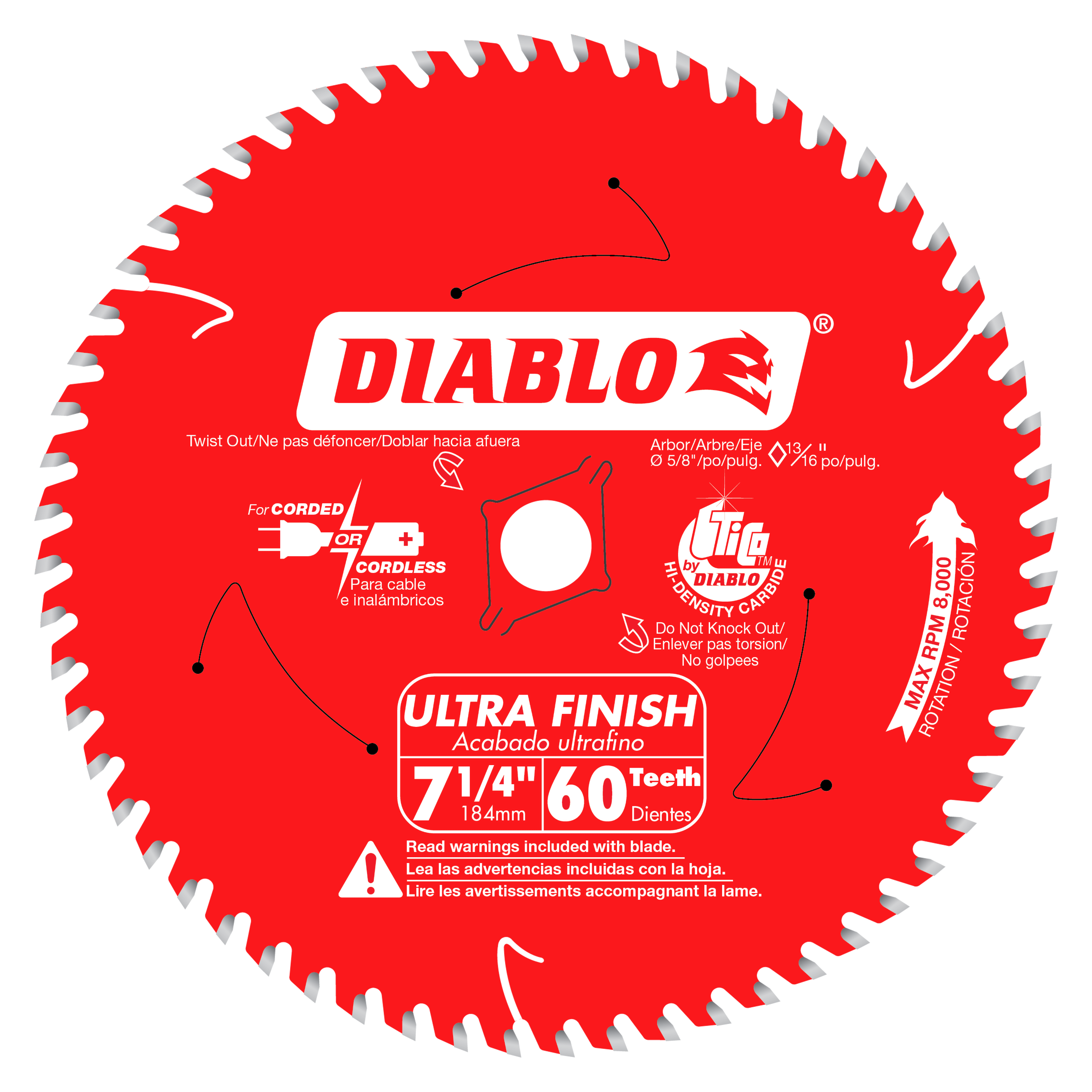 Diablo D0760A 7-1/4" x 60-Teeth Ultra Finish Carbide Saw Blade for Wood
