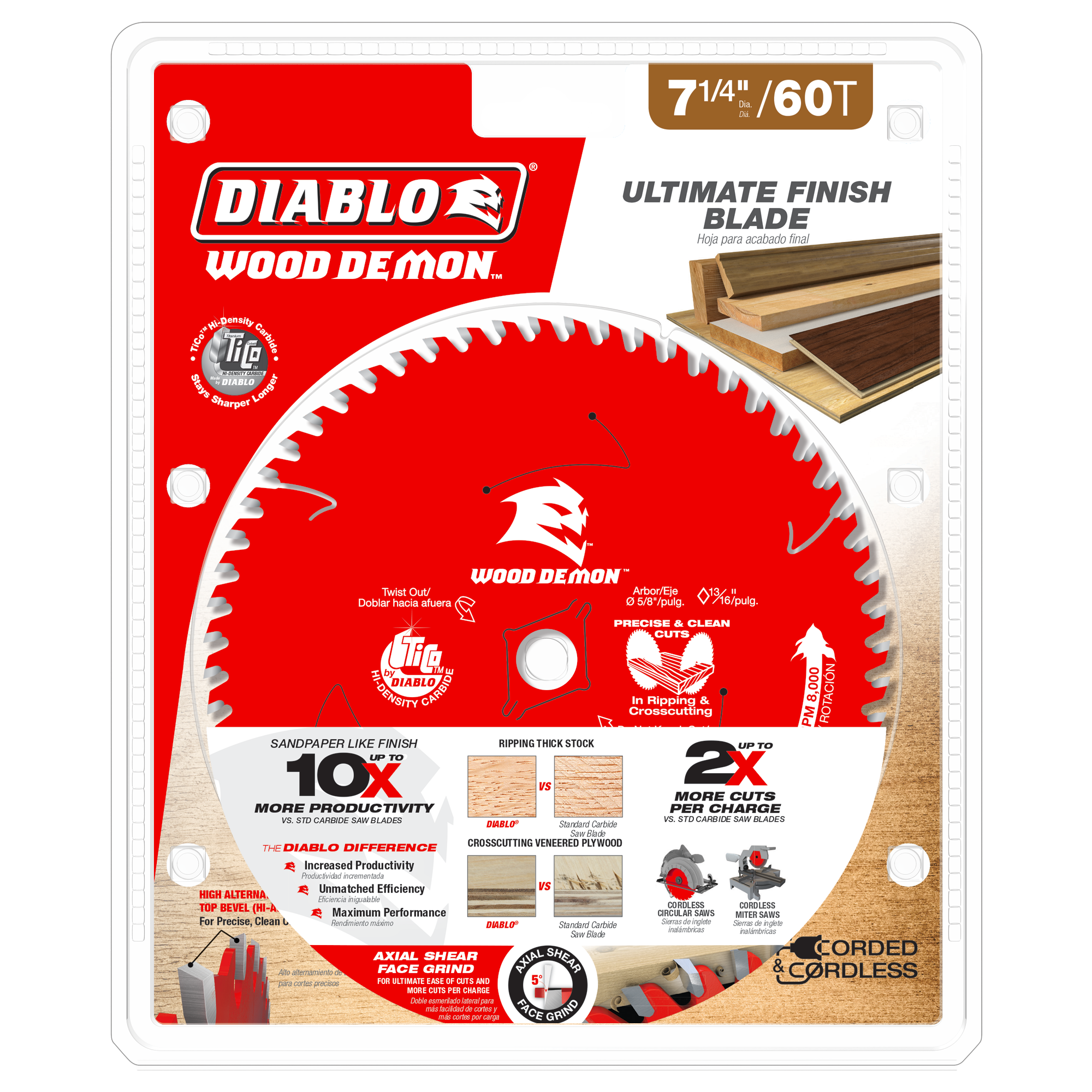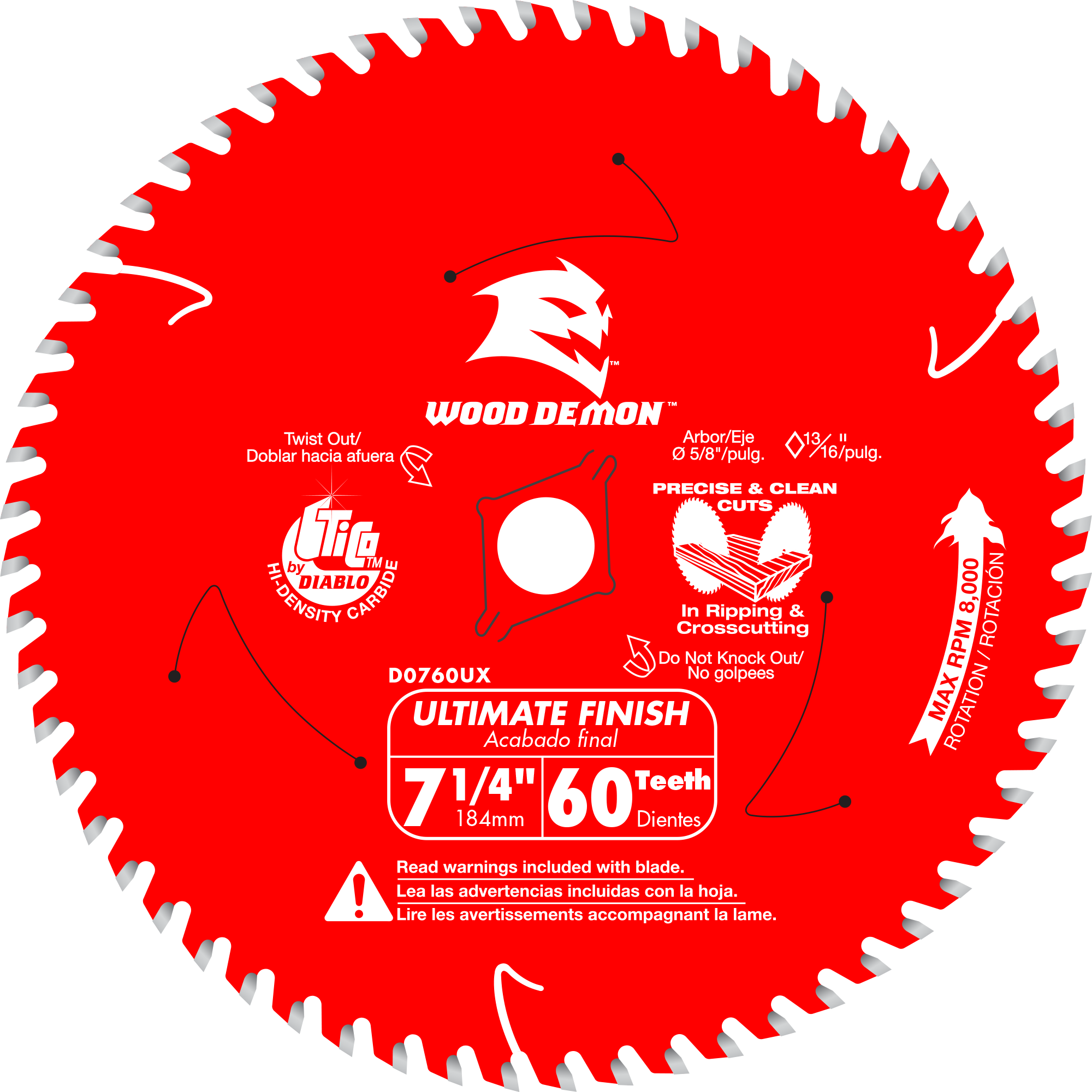 Diablo D0760UX 7-¼ 60-Teeth Wood Demon™ Ultimate Finish Carbide Saw Blade for Wood