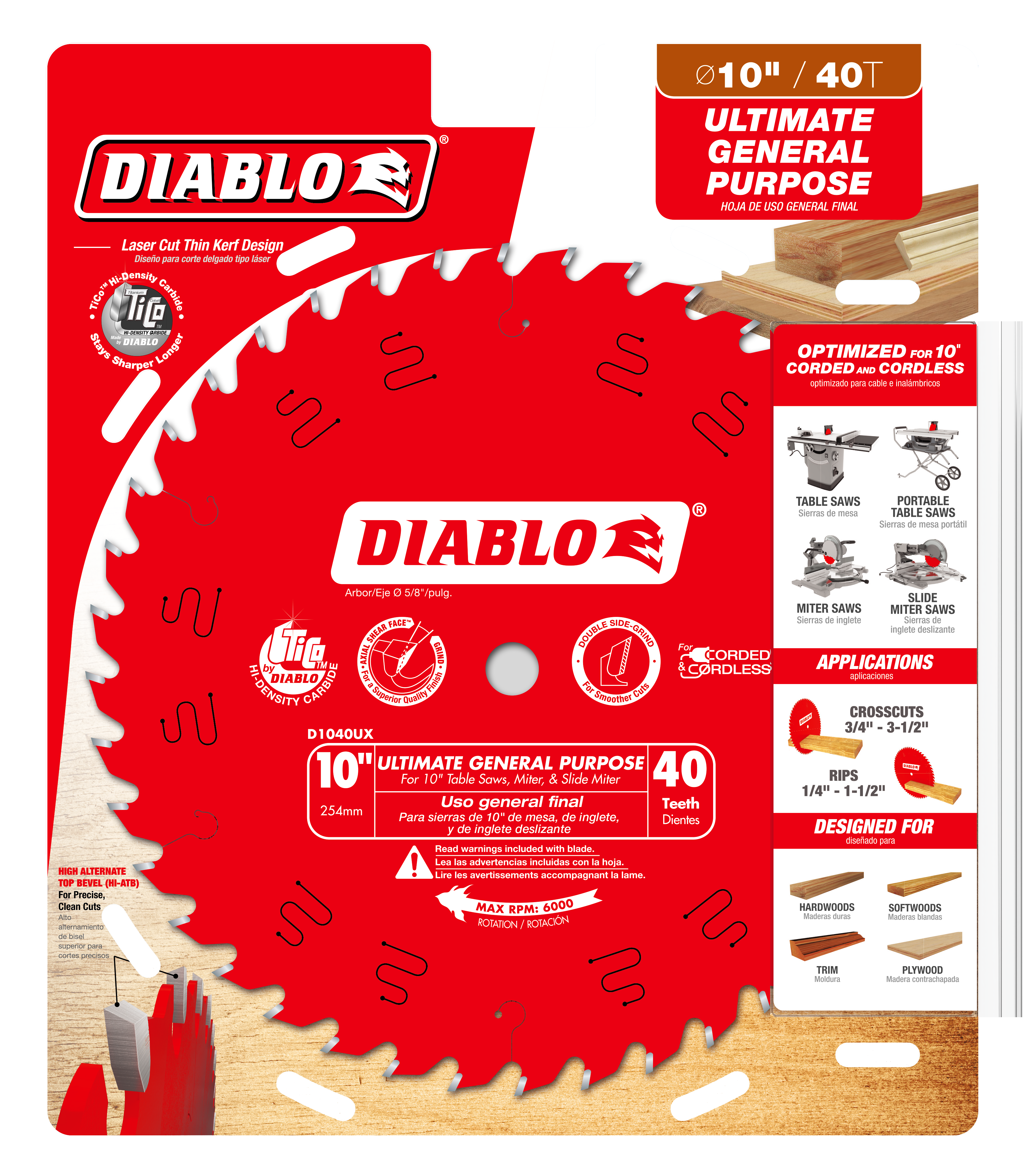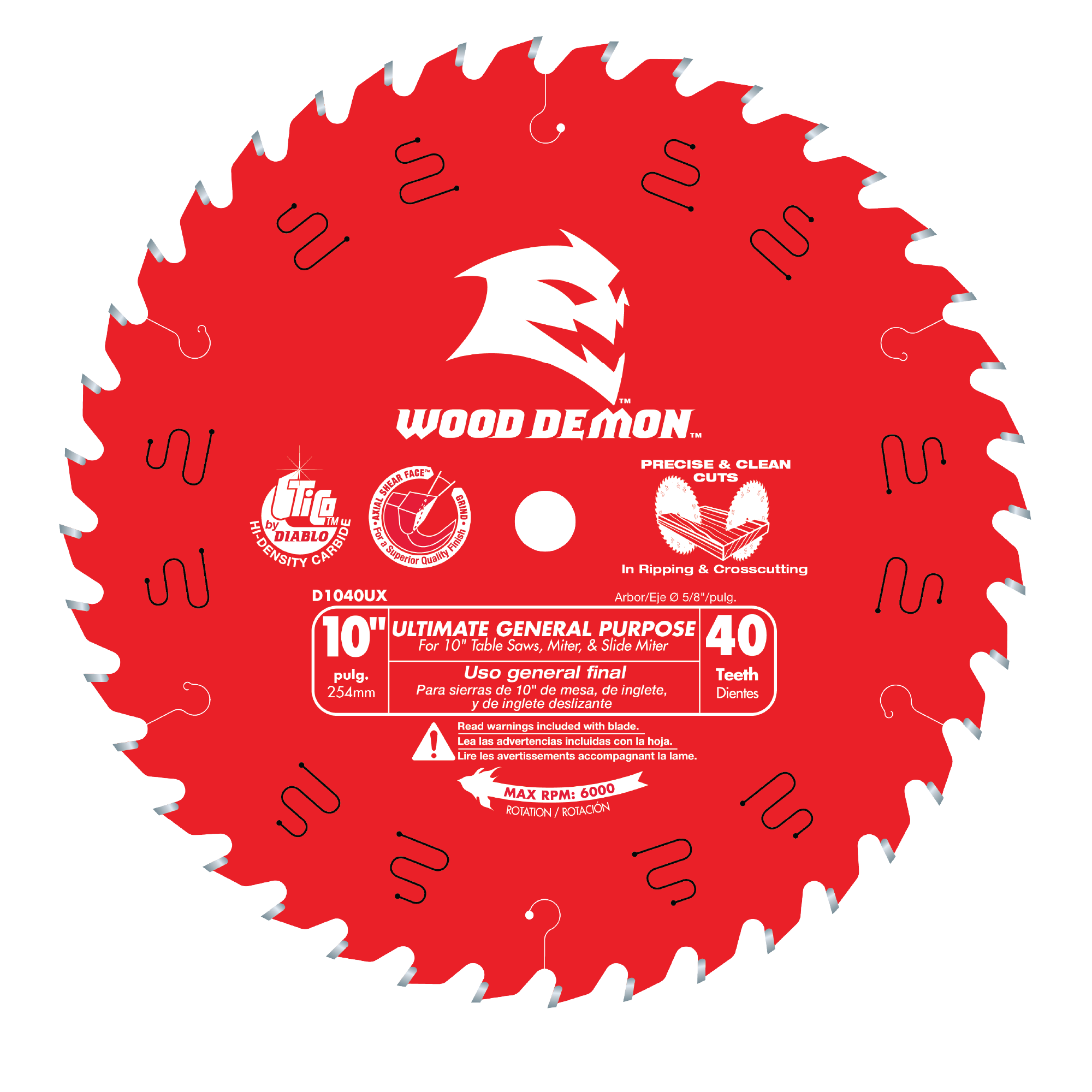 Diablo D1040UX 10" x 40-Teeth Wood Demon™ Ultimate General Purpose Carbide Saw Blade for Wood